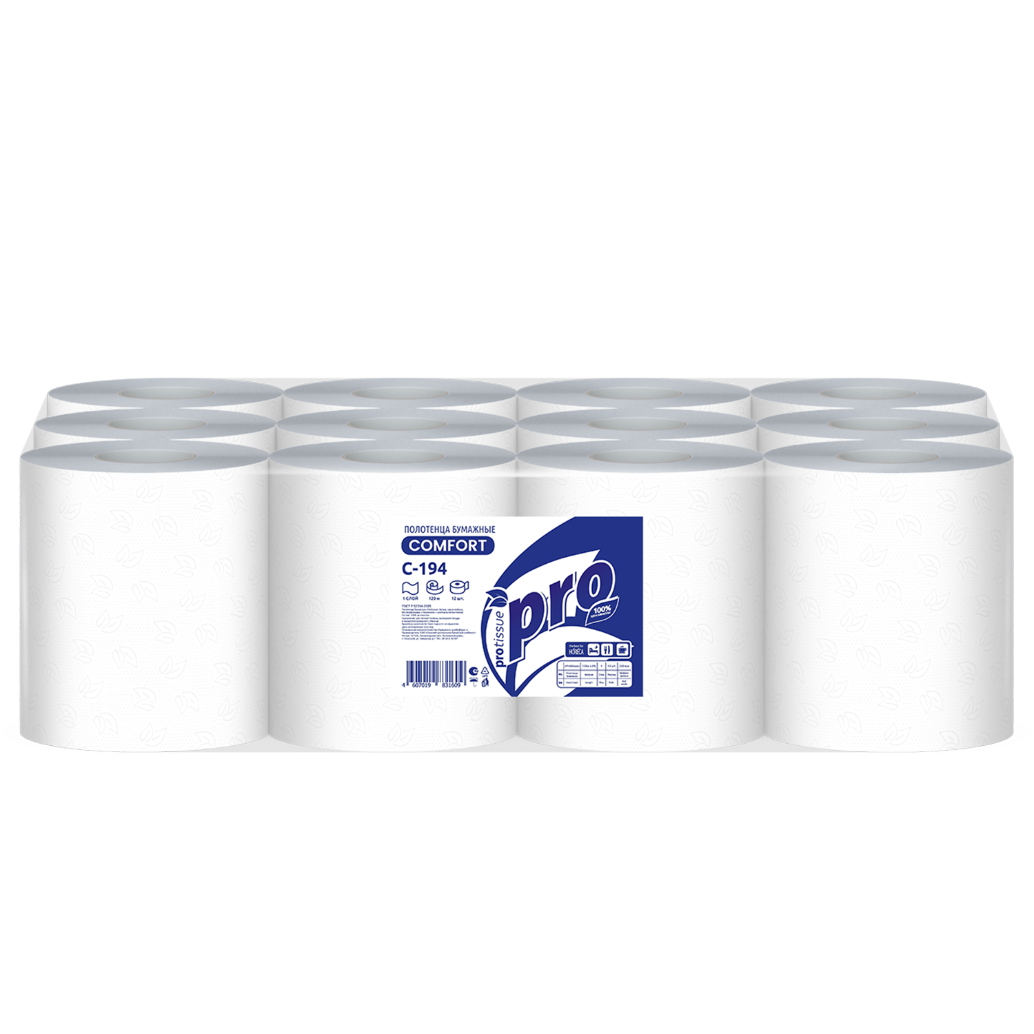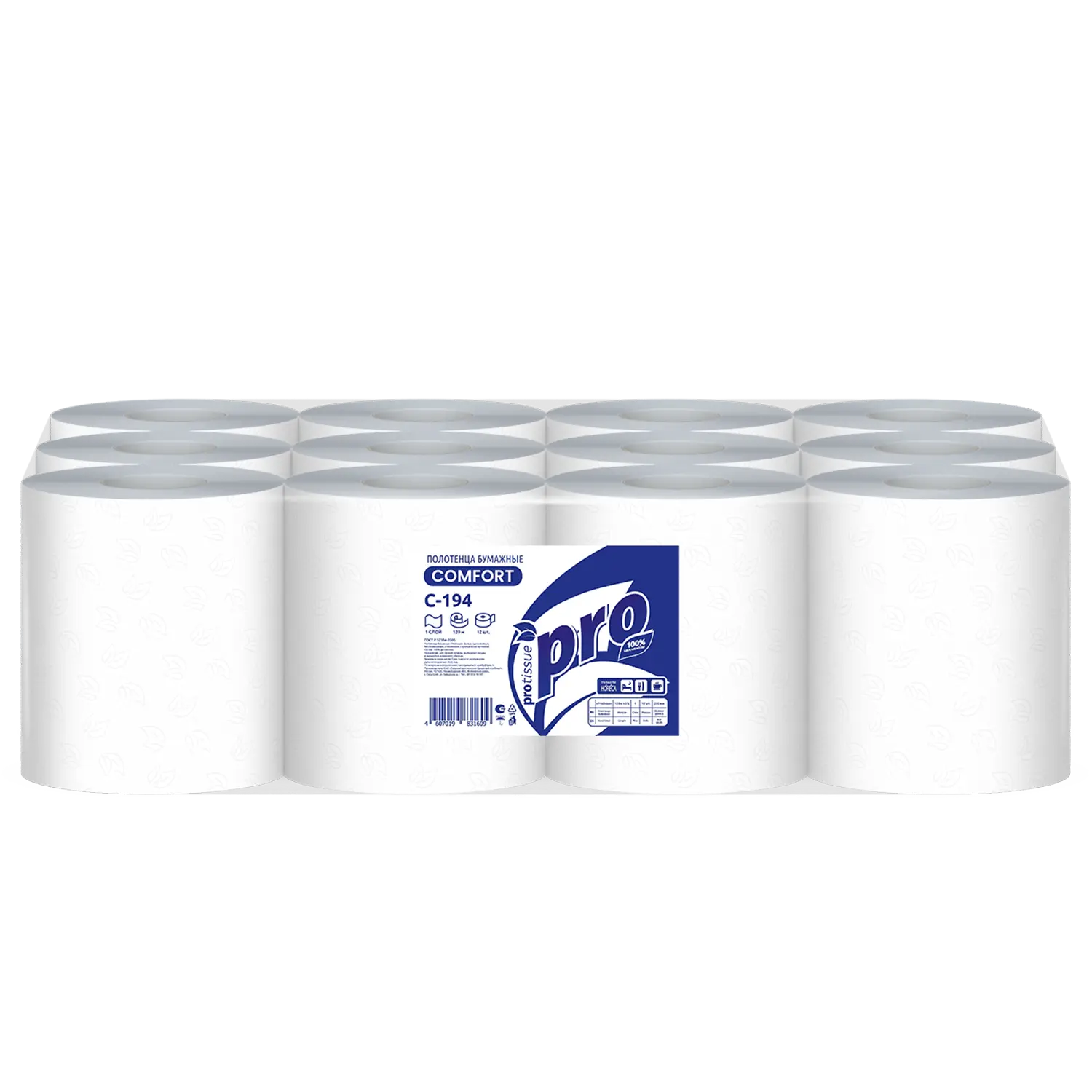 Protissue полотенца бумажные ролевые однослойные, 120 листов 12 шт/ упак