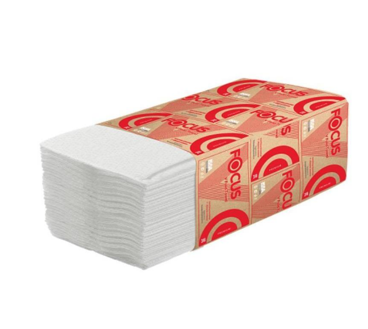 Focus premium полотенца бумажные V 2 сл 200 л 23х20,5 см белые 15пач в упаковке