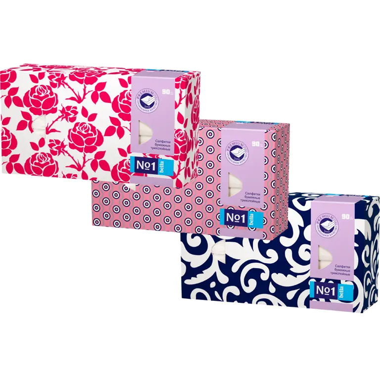 BELLA Салфетки универсальные bella №1 трехслойные (микс, 3 дизайна), 90 шт.уп. (Сибирь) )