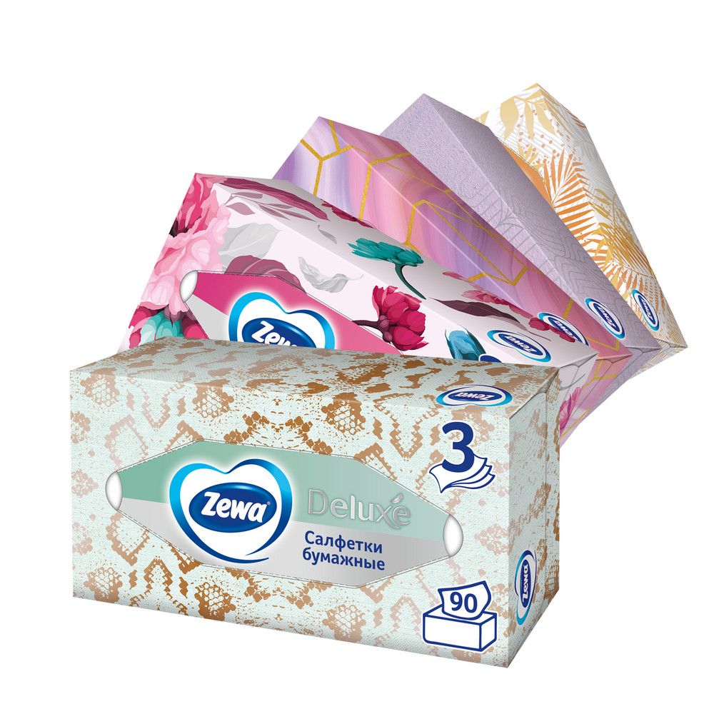Zewa салфетки для лица 3 х слойные делюкс дизайн 90 шт прямоуг