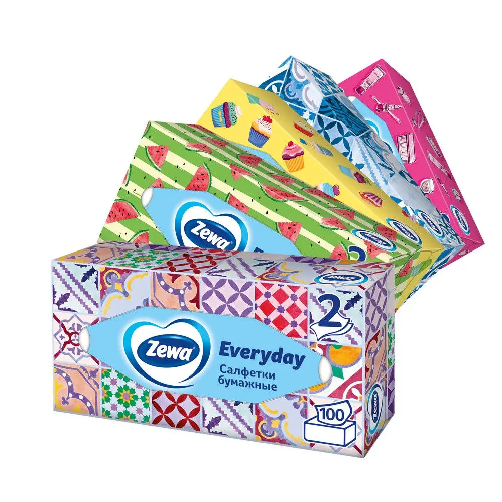Двухслойные салфетки Zewa заботятся о коже и помогают всем членам семьи ощущать чистоту и комфорт, а яркие дизайны упаковок гармонично дополняют интерьер.