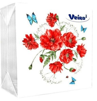 Veiro салфетки 1 слойные с рисунком в ассортименте 24*24 50 листов 90 шт в кор