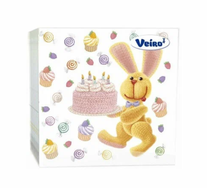 Вейро салфетки 3 слойные с рисунком кролик и сладости 33*33 20 листов