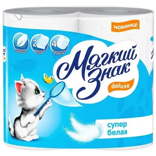 Мягкий Знак туалетная бумага Deluxe 2-х слойная белая 4шт