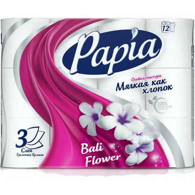 HAYAT 'Papia ' Туалетная бумага белая с аром. Bali Flower и рисунком трёхслойная, 12 шт