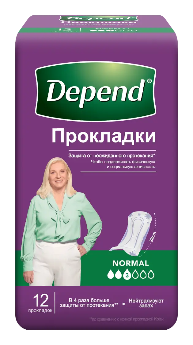 Новые прокладки Depend Normal созданы специально для защиты при средней степени недержания.