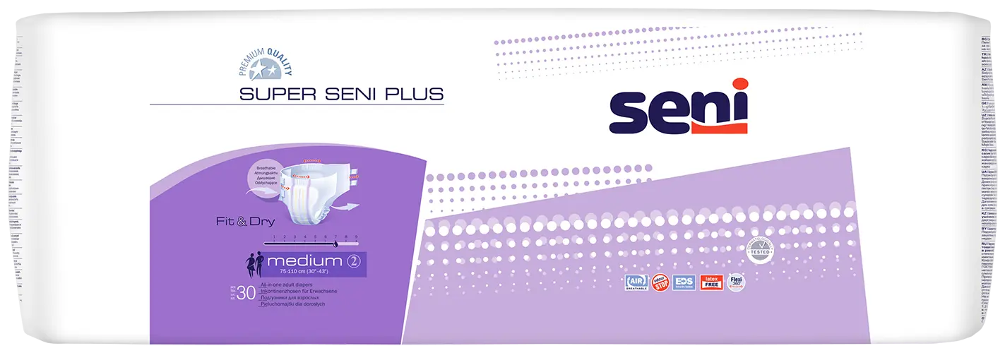 Подгузники для взрослых Super Seni Plus Extra Large - ночные подгузники с повышенным уровнем впитываемости для людей, страдающих средними и тяжелыми формами недержания. Предназначены как для активных людей, так и для людей с ограниченными двигательными возможностями. Наружный слой подгузника состоит из пропускающего воздух материала, который позволяет коже свободно дышать, что гарантирует высокий уровень комфорта и отсутствие раздражений и пролежней. Подгузники защищают кожу от влаги и позволяют содержать постель больного в чистоте. Обладают повышенным уровнем впитываемости. Входящий в состав впитывающего слоя антибактериальный абсорбент обеспечивает высокий уровень впитывания и предотвращение неприятного запаха.