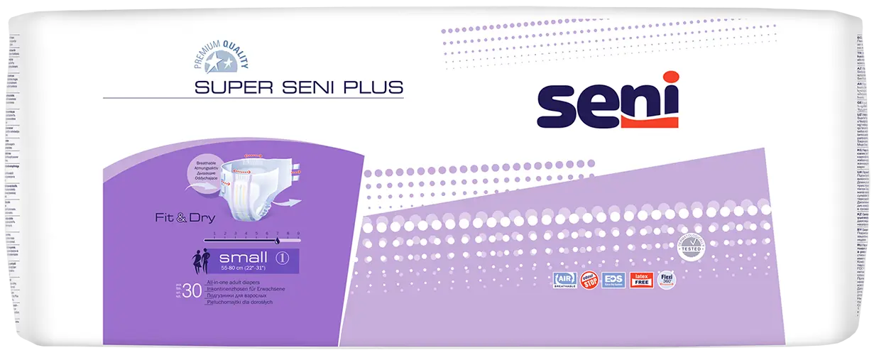 Подгузники для взрослых Super Seni Plus Extra Large - ночные подгузники с повышенным уровнем впитываемости для людей, страдающих средними и тяжелыми формами недержания. Предназначены как для активных людей, так и для людей с ограниченными двигательными возможностями. Наружный слой подгузника состоит из пропускающего воздух материала, который позволяет коже свободно дышать, что гарантирует высокий уровень комфорта и отсутствие раздражений и пролежней. Подгузники защищают кожу от влаги и позволяют содержать постель больного в чистоте. Обладают повышенным уровнем впитываемости. Входящий в состав впитывающего слоя антибактериальный абсорбент обеспечивает высокий уровень впитывания и предотвращение неприятного запаха.