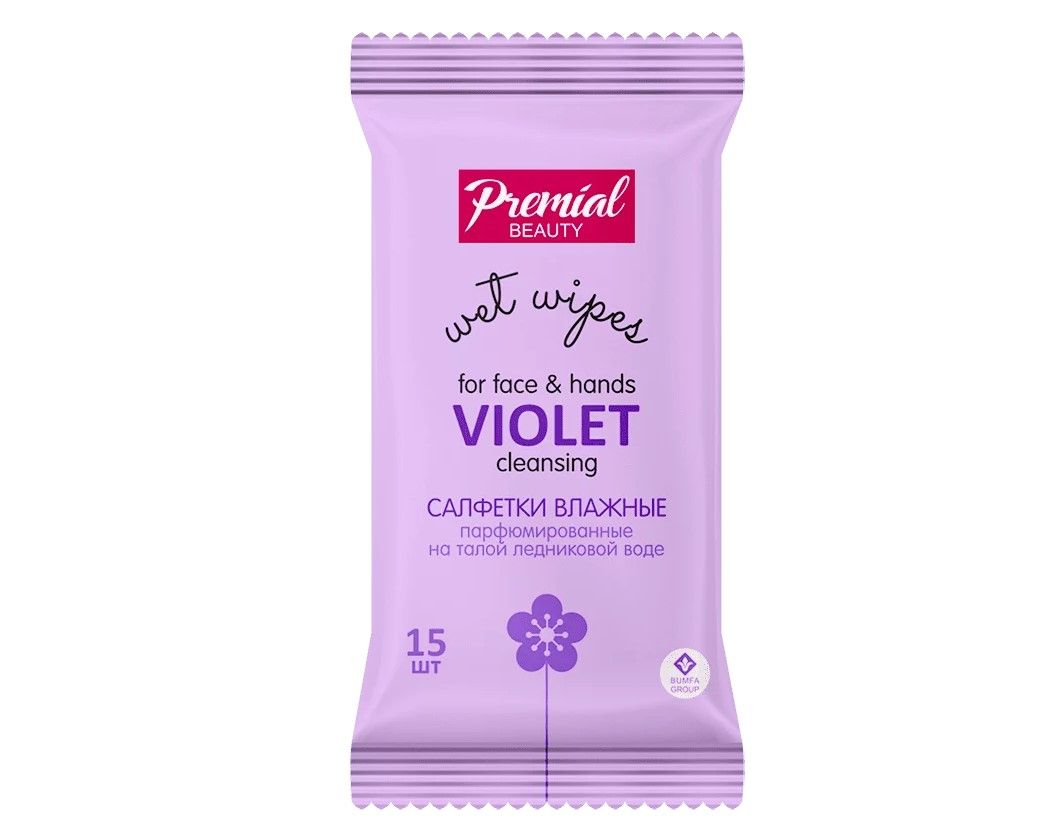 Premial салфетки влажные очищающие фиалка 15 шт