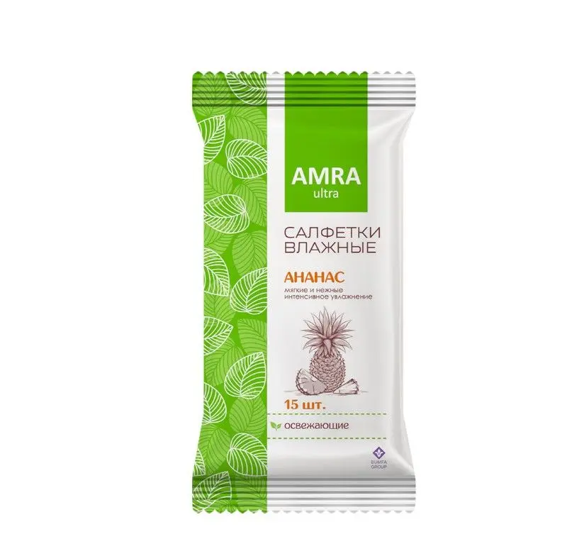 AMRA салфетки влажные освежающие с ароматом ананаса - предназначены для гигиены рук и лица. Имеют легкий и приятный аромат. Не содержат спирт