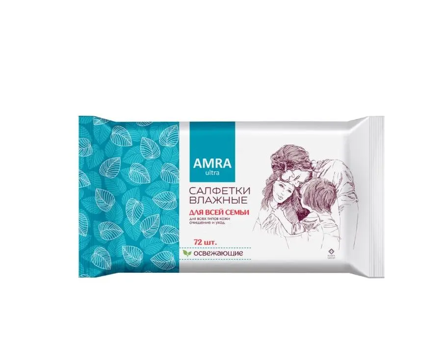 Amra салфетки влажные освежающие для всей семьи 72 шт