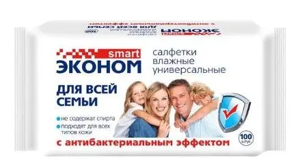 Эконом Smart №100 влажные салфетки для всей семьи с антибактериальным эффектом