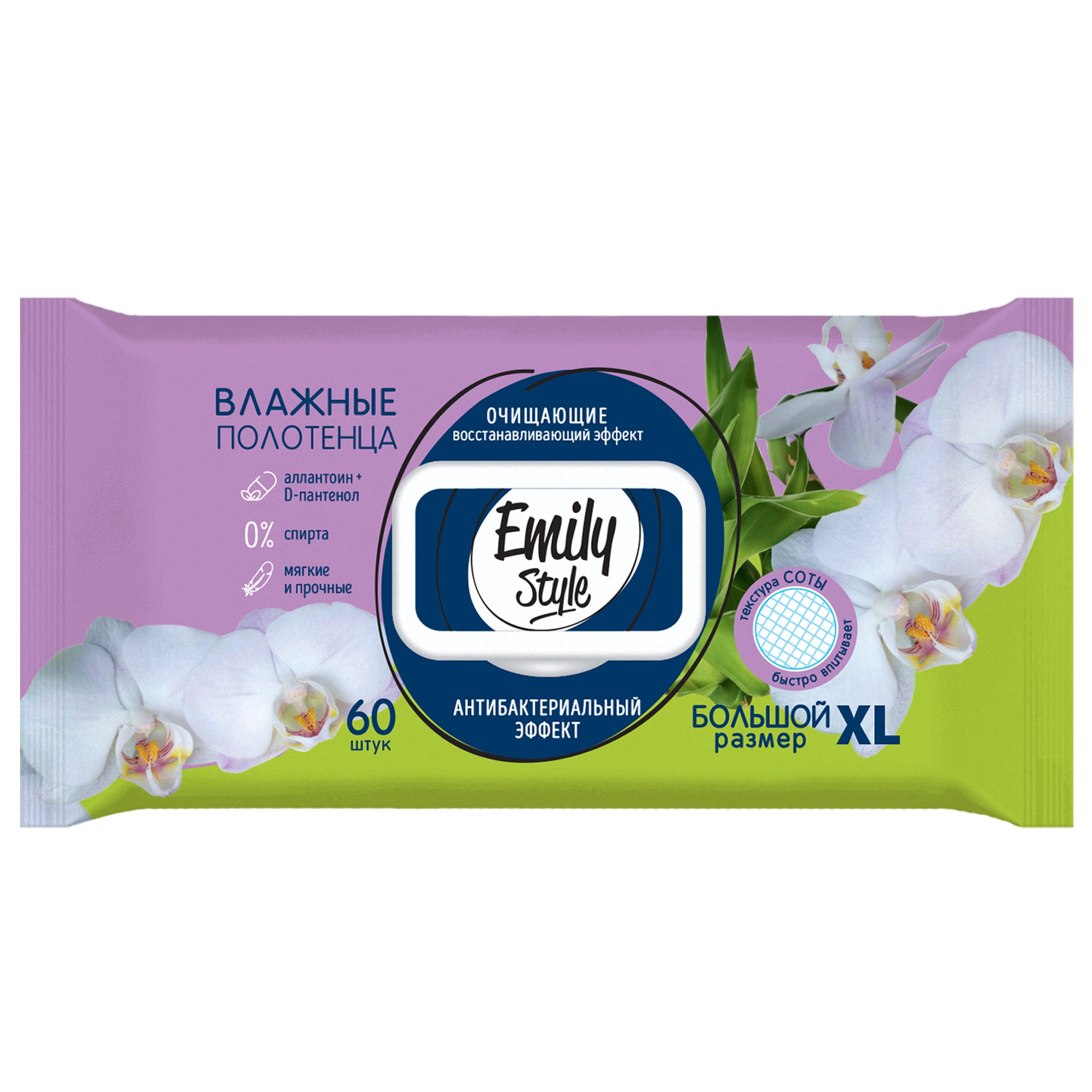 Emily Style влажные полотенца для всей семьи антибактериальные с крышкой xl размер соты 60 шт