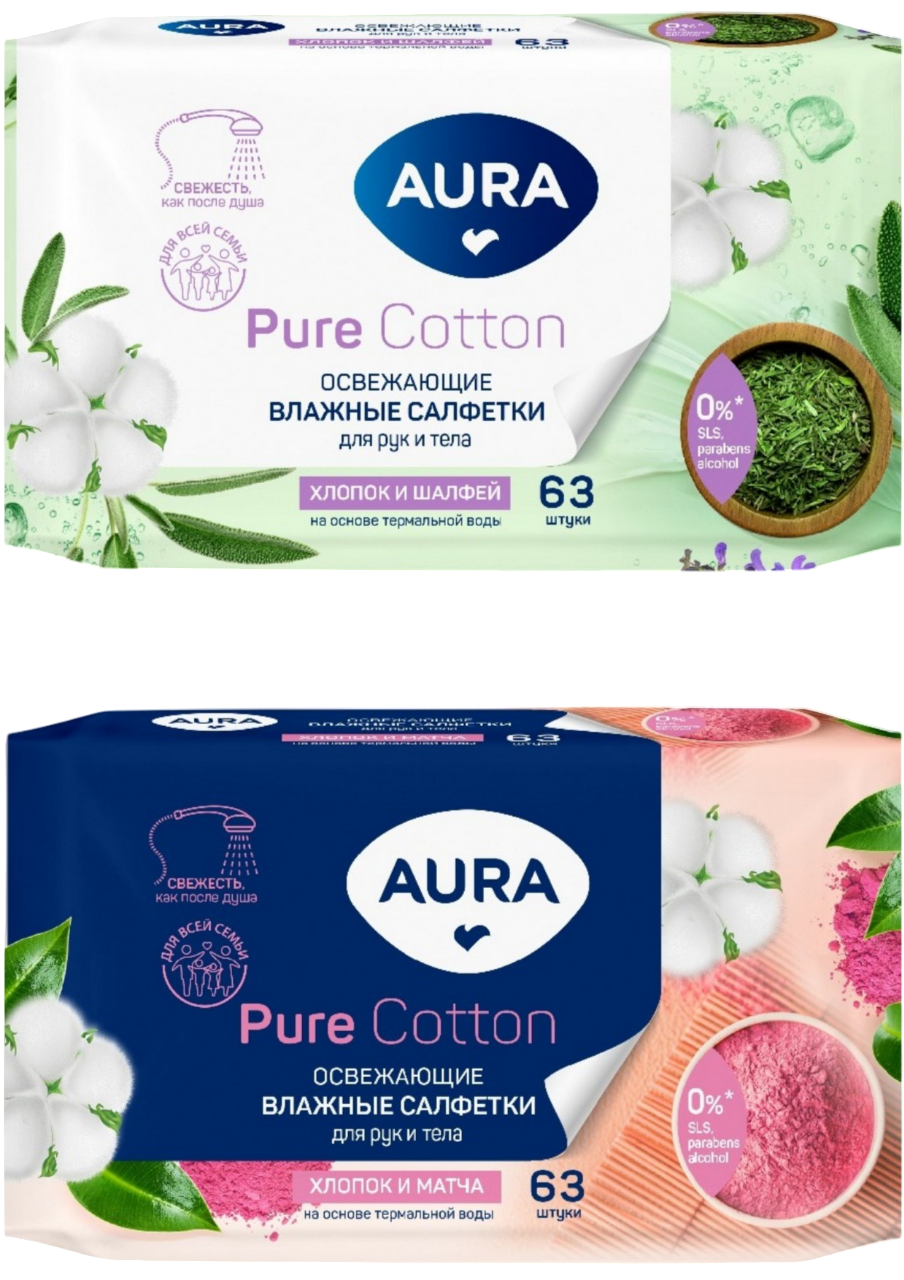 Aura влажные салфетки для всей семьи освеж 63 шт