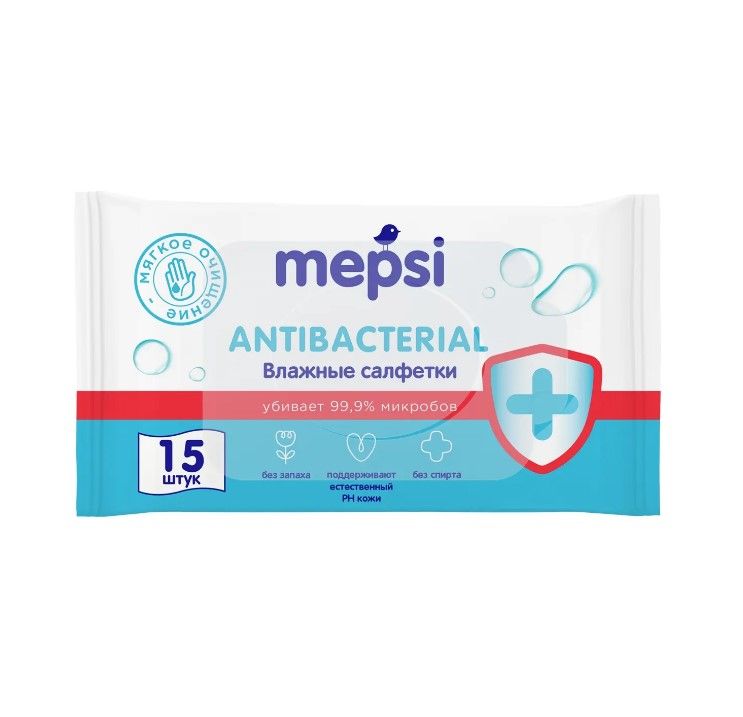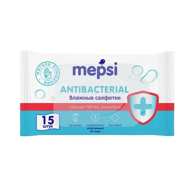 Mepsi влажные очищающие салфетки с антибактериальным эффектом 15 шт