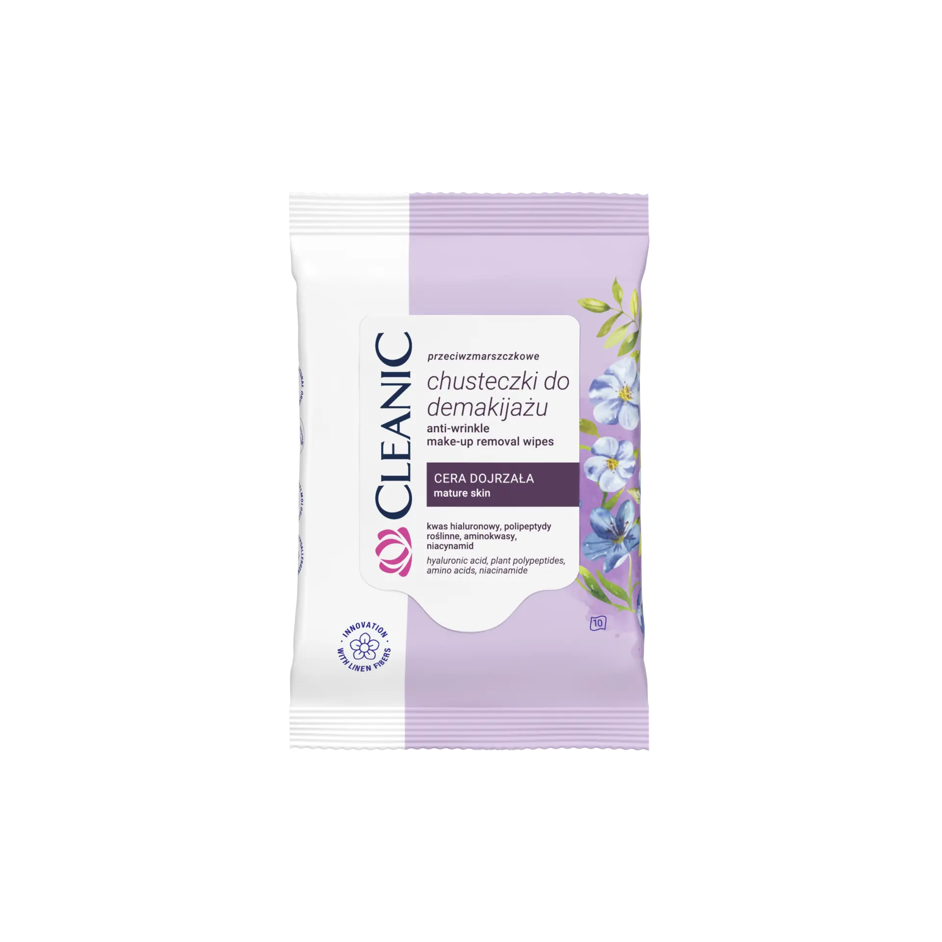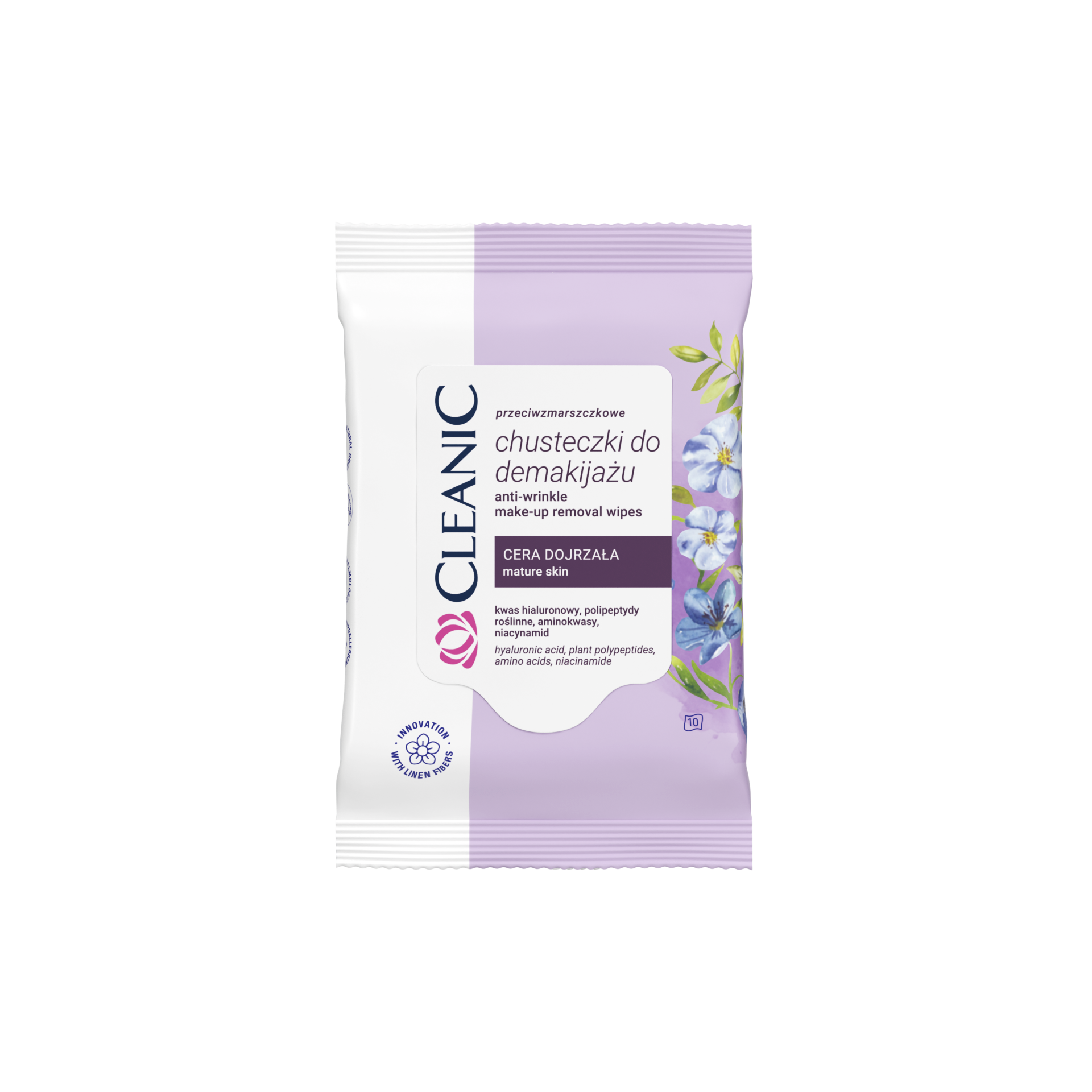 Cleanic предлагает первые на рынке влажные салфетки для снятия макияжа, содержащие волокна льна, которые способствуют снижению количества бактерий. Антивозрастные cалфетки с гиалуроновой кислотой, ниацинамидом и растительными полипептидами – для зрелой кожи.