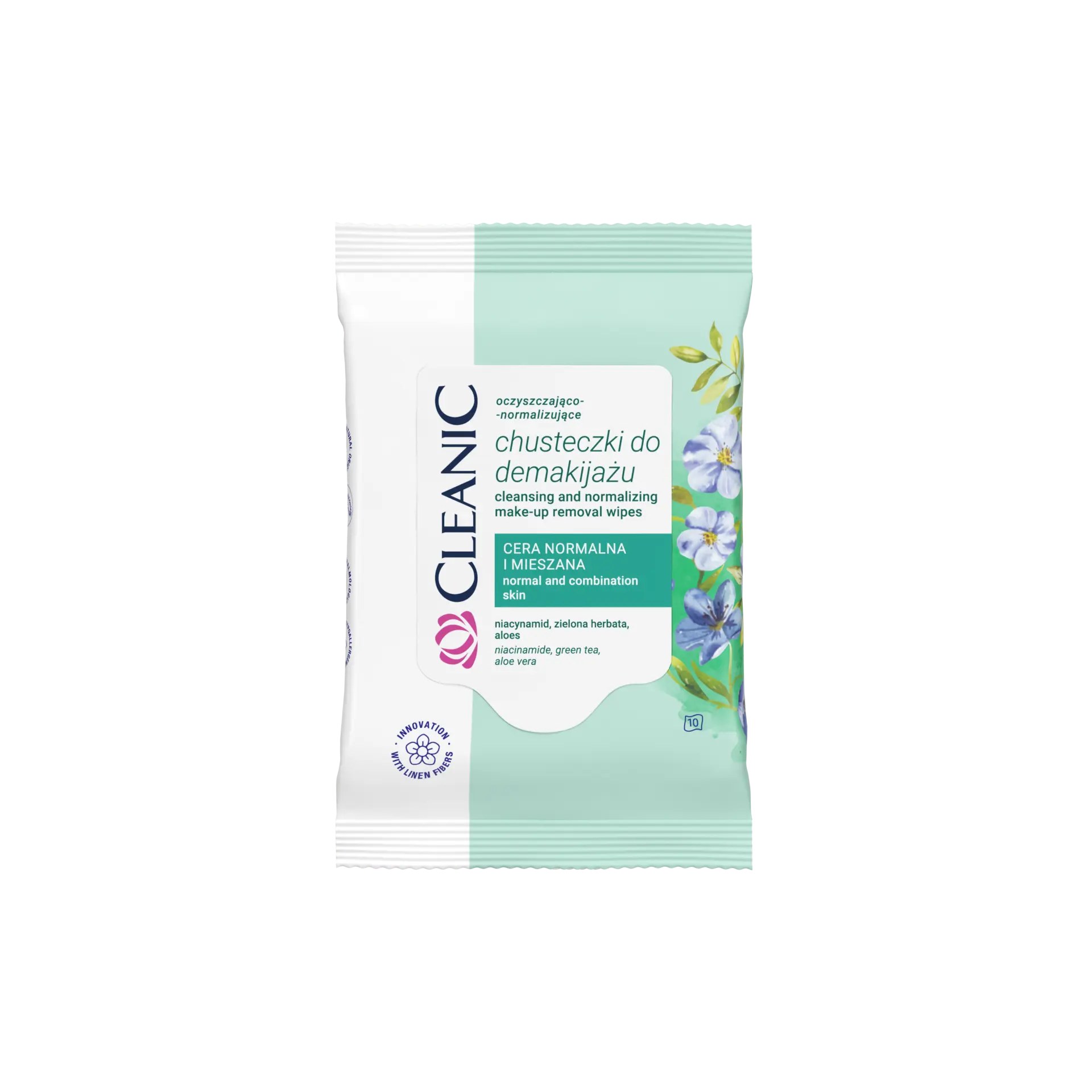 Cleanic предлагает первые на рынке влажные салфетки для снятия макияжа, содержащие волокна льна, которые способствуют снижению количества бактерий. Очищающие и нормализующие cалфетки с экстрактом зеленого чая, ниацинамидом и алоэ вера – для нормальной и комбинированной кожи.