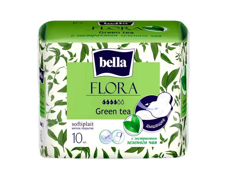 BELLA Прокладки FLORA Green tea, 10 шт.уп. (с экстрактом зеленого чая)