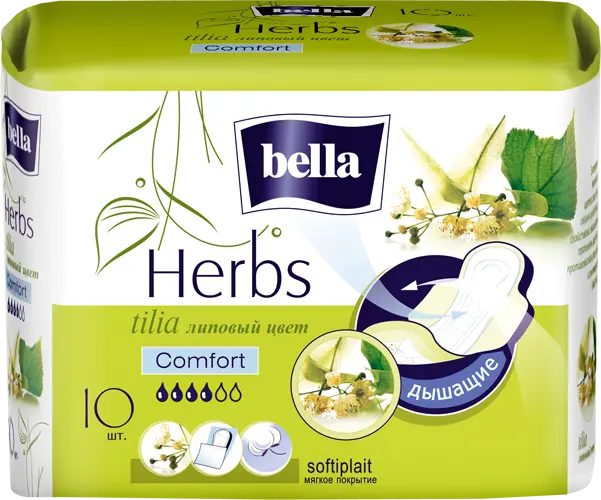 Прокладки BELLA HERBS Tilia softiplait с экстрактом липового цвета 10шт
