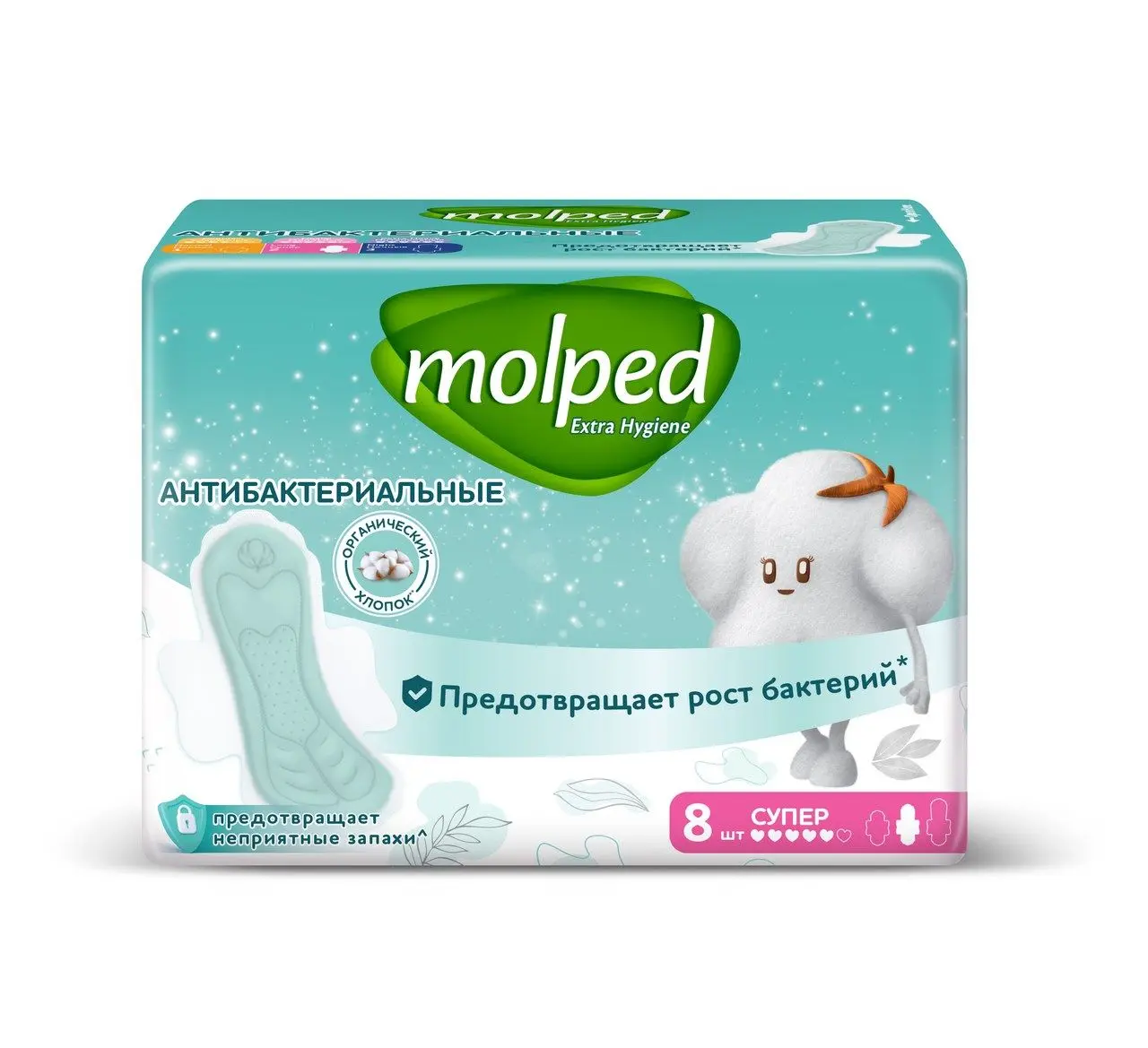 Molped антибактериальные прокладки с крылышками супер 8 шт