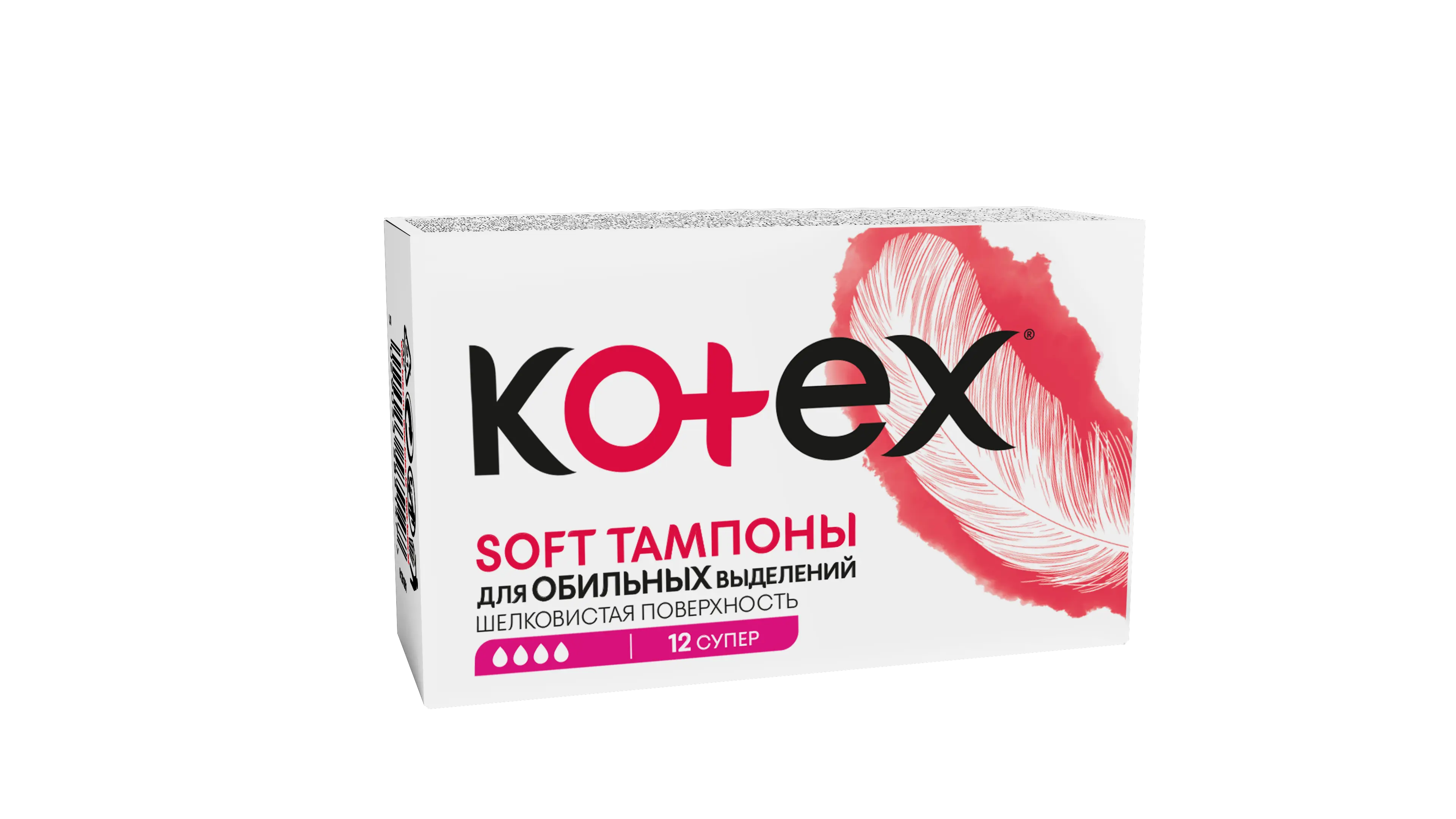 Упаковка из 12 тампонов – это идеальный вариант для 1-2 циклов, что делает ее не только удобным, но и выгодным выбором. Каждый тампон в индивидуальной упаковке – удобно брать с собой. Чтобы извлечь тампон, достаточно всего одного движения благодаря удобной клик-системе*. Тампоны Kotex SOFT – это новый уровень комфорта во время обильных выделений. Выбирайте Kotex и наслаждайтесь каждой минутой, не отвлекаясь на неудобства.