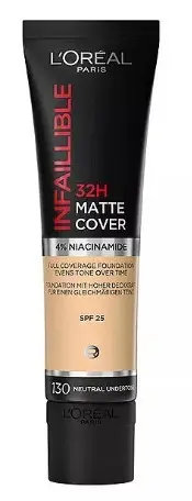 Матирующий cтойкий тональный крем Infaillible Matte Cover [Инфаибль Мат Кавер] 32 часа работает на твою кожу и заметно улучшает ее состояние. Он создает стойкое ровное матовое покрытие, без эффекта маски! Формула с 4% ниацинамида в составе выравнивает тон кожи и маскирует все виды кожных несовершенств. СПФ 25. Невесомая текстура матирующего тонального крема легко наносится и равномерно распределяется на коже. Стойкий тональный крем Infaillible 32Ч Матовое Покрытие держится в течение всего дня, ощущается ультралегким и дышащим на коже. СПОСОБ ПРИМЕНЕНИЯ: Шаг 1. Встряхнуть перед использованием. Нанести небольшое количество тонального крема кистью, спонжем или подушечками пальцев. Шаг 2. Для коррекции несовершенств кожи воспользуйтесь стойким многофункциональным консилером INFAILLIBLE. Шаг 3. Для закрепления макияжа рекомендуем воспользоваться матирующей пудрой INFAILLIBLE.
