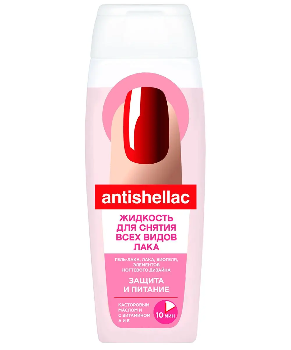Эффективна для снятия гель-лака в домашних условиях. Активный комплекс витаминов А и Е питает, восстанавливает, придает эластичность, стимулирует процессы регенерации. Касторовое масло питает, защищает, укрепляет и восстанавливает ногти.