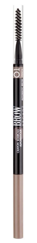 Идеальные брови – это не миф! С новыми автоматическими карандашами BROW ARСADE приблизиться к идеалу стало просто.С одной стороны карандаша - тонкий стержень slim, который позволяет скорректировать форму бровей и добавить цвет, по желанию рисуя широкую или тонкую линию в технике микроблендинга, закрашивая пустоты. С другой стороны расположена щёточка-расчёска, чтобы расчесать брови и растушевать цвет.Формула на основе натуральных восков придаёт текстуре стойкость, она не размазывается и не тускнеет.