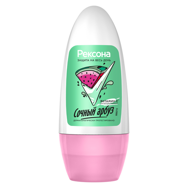 Переходы к крепости Rexona. Шариковый антиперспирант Сочный арбуз – твой надежный помощник в борьбе с потом и неприятным запахом. Это идеальный выбор для молодой и нежной кожи подмышек, а также эффективная защита до 48 часов от пота и неприятных запахов. • Мягкая формула Rexona, обогащенная витамином Е*, увлажняет и способствует восстановлению кожи подмышек, обеспечивая вам комфорт. • Невидимая защита не оставляет следа. • Наслаждайтесь манящим ароматом спелого арбуза и легким летним настроением. • Без этилового спирта и красителей. • Адаптация для использования с 14 лет. • Дерматологически протестирован. Забудь о неприятном запахе пота и мокрых пятнах на одежде. С Rexona ты можешь выбирать любые модные луки и быть уверенной в защите. Волнение, перепады температуры, Индикатор активности, – пусть твой день будет активным и насыщенным. Рексона всегда рядом с тобой и не подведет!