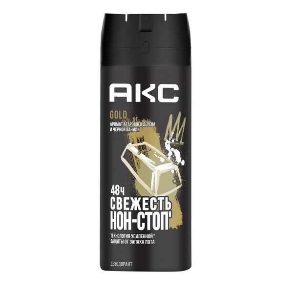 Освежающий мужской дезодорант АКС GOLD создан специально для крутых парней, которым нужна полная уверенность в своем образе и безукоризненно стильный парфюм. Аэрозольный мужской дезодорант спрей из смелой линейки создан для тех, кто не боится стоять на своем, готов следовать за мечтой и привык действовать! Средство имеет ванильный крышесносный аромат, разработанный в сотрудничестве с одними из лучших мировых парфюмерных команд. Дезодорант АКС мужской не оставляет следов и пятен на одежде. Дезодорант парфюмированный АКС GOLD обеспечивает желанную свежесть коже подмышек. Эффективная формула спрея АКС 2в1 включает в себя два основных элемента защиты. Это надежная защита от запаха пота на 48 часов* и топовый** пикантный аромат, сдержанный и чувственный одновременно. Агаровое дерево и черная ваниль – это пряный и сладкий запах, который станет изысканным дополнением к твоей коллекции парфюмированных средств для личной гигиены. Состав продукта обогащен ультрасильной'' антибактериальной технологией против запаха пота, в составе которой один из самых сильных консервантов, синтезируемый из различных зерновых культур. Она оказывает антибактериальный эффект, защищая от бактерий, вызывающих неприятный запах при потливости.