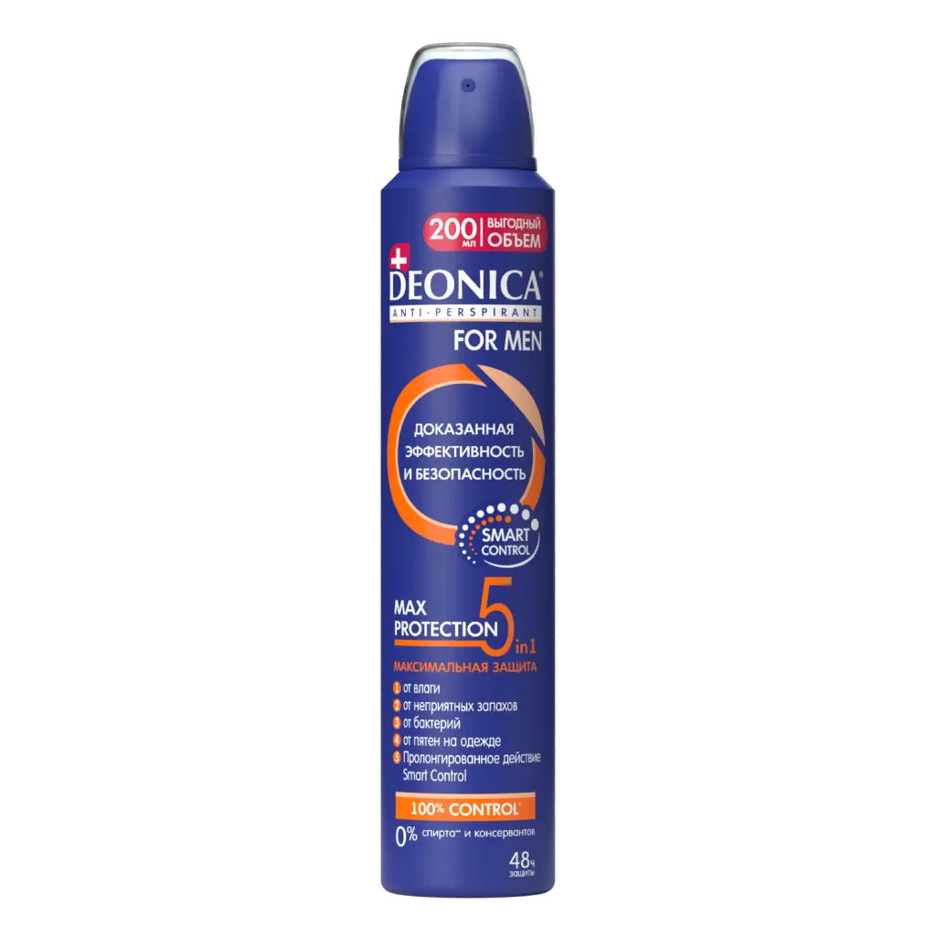 Современный мужской антиперспирант DEONICA FOR MEN 5 Protection благодаря специальной формуле обеспечивает максимальную защиту на 48 часов от влаги, неприятных запахов, бактерий, пятен на одежде.