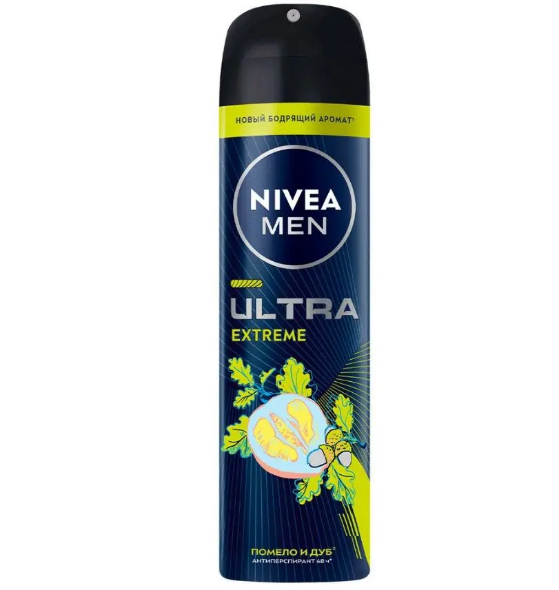 ПОПРОБУЙТЕ НОВИНКУ! Антиперспирант мужской «ULTRA EXTREME» от NIVEA MEN с бодрящим ароматом помело и дуба. Надёжная защита от запаха пота на 48 часов* с антибактериальным эффектом**. Дерматологически протестировано.