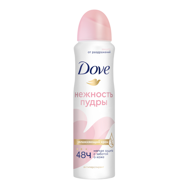 Dove антиперспирант -аэрозоль Нежность пудры, 150 мл обеспечит превосходный уход за кожей подмышек с любовью и заботой о теле. Антиперспирант для женщин и девушек от 14 лет надежно защищает от пота и его последствий в течение 48 ч. В формуле нет этилового спирта, потому антиперспирант не сушит кожу, а делает ее мягкой и гладкой. Спрей на четверть состоит из увлажняющего крема, обладает нежной текстурой и дарит ощущение комфорта. Утонченный цветочный аромат из ноток фрезии и пионов эффективно нейтрализует неприятные запахи. Антиперспирант-аэрозоль Нежность пудры уже через три дня после бритья или эпиляции поможет успокоить поврежденную поверхность, устранить раздражение и покраснения. Наличие масла семян подсолнечника делает аэрозоль особенно деликатным по отношению к вашей коже. Витамины E и F в его составе помогают коже быстрее восстановиться.
