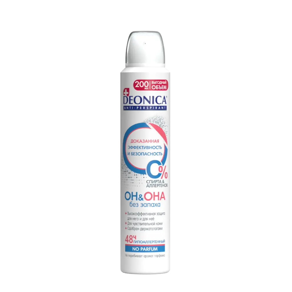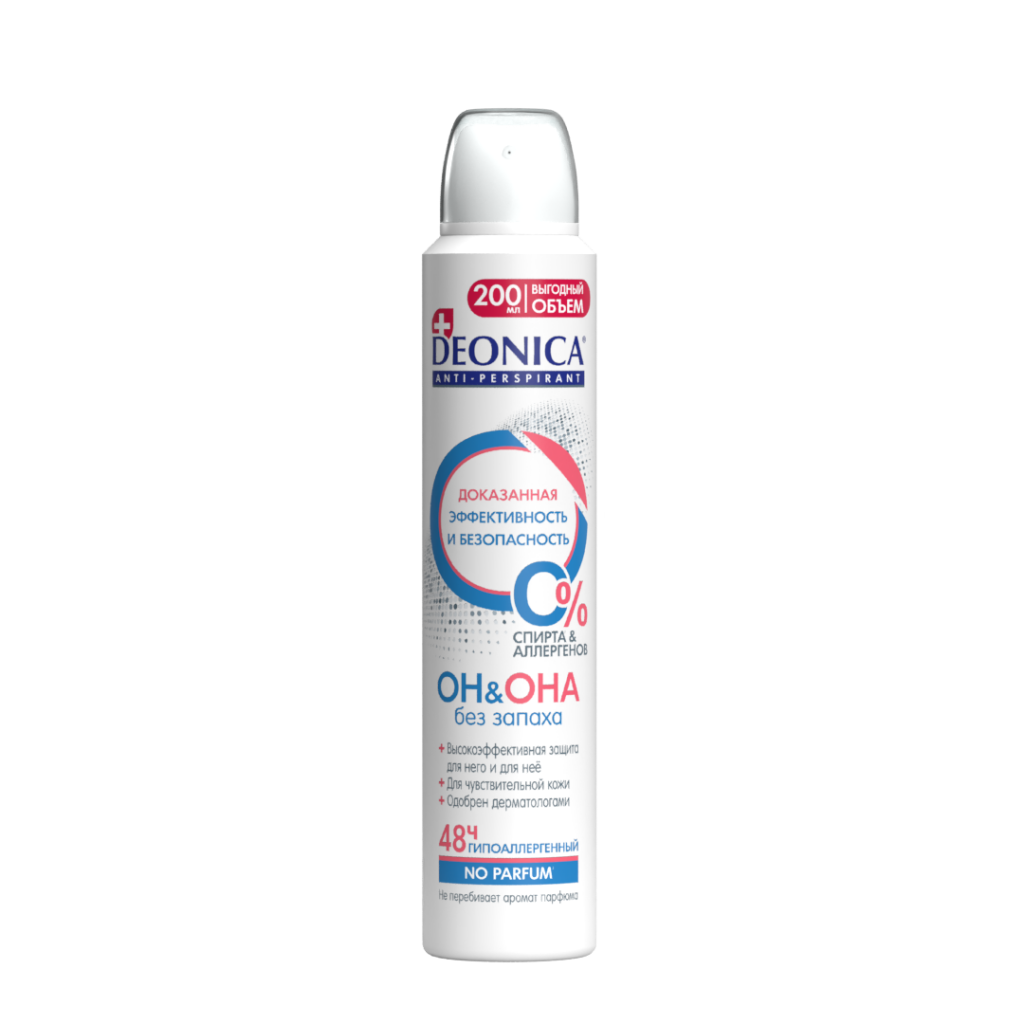 Уникальный антиперспирант DEONICA БЕЗ ЗАПАХА ОН&ОНА с гипоаллергенной формулой разработан специально для людей с чувствительной кожей и склонных к аллергиям, остро реагирующих на запахи.
