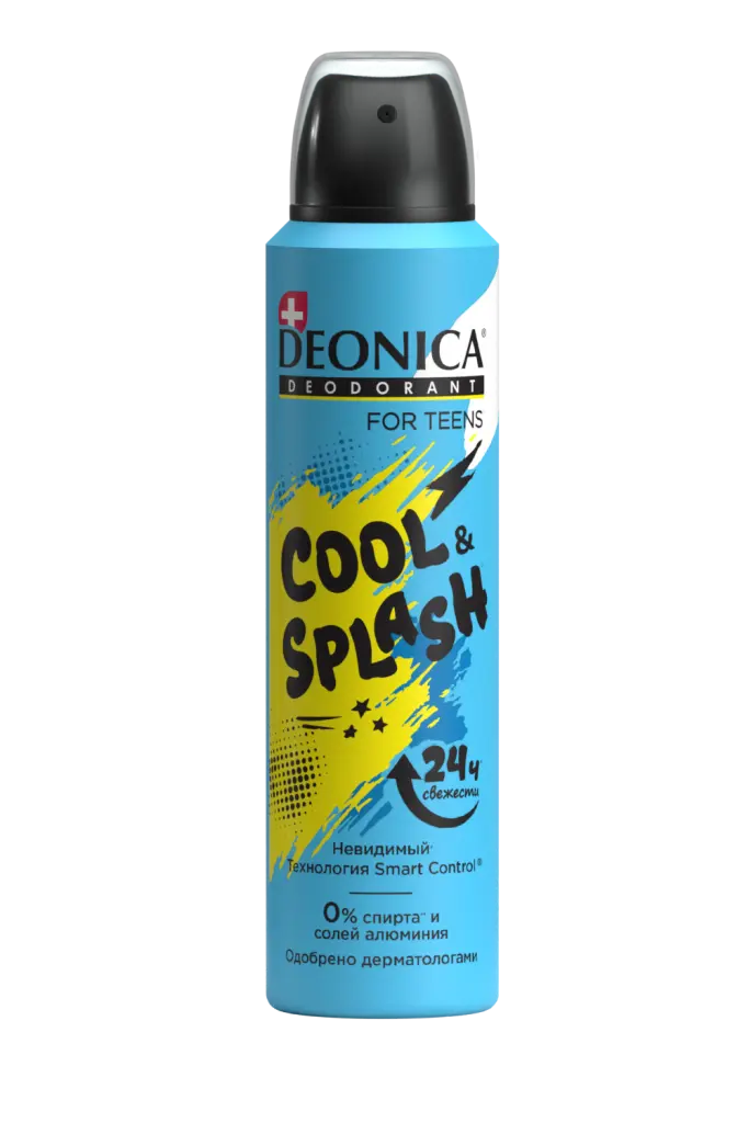 Специальная формула Deonica for Teens Cool&Splash с бисабололом и экстрактом бамбука разработана специально для нежной кожи подмышек, обеспечивает защиту и комфорт на 24 часа, позволяя коже дышать.