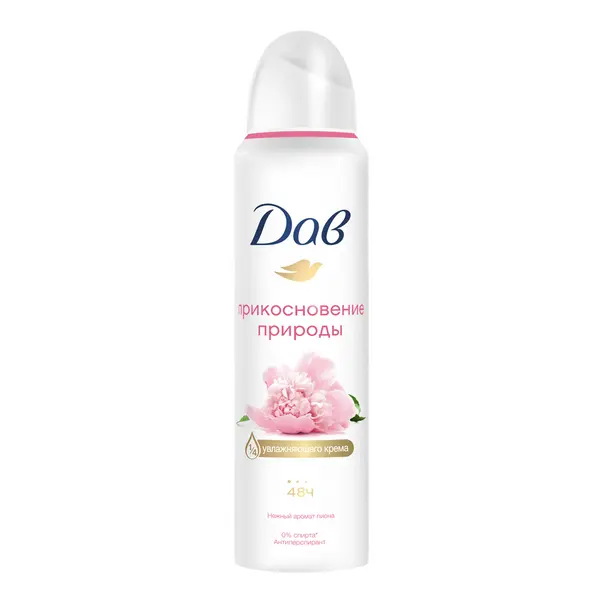 Антиперспирант-аэрозоль Дав Прикосновение природы Нежный аромат пиона – это ваша защита от пота и запаха на 48 часов и уход за нежной кожей подмышек. Формула антиперспиранта с 1/4 увлажняющего крема в составе восстанавливает и смягчает кожу. Не содержит спирта*. Аромат стартует сочными фруктовыми нотками, переходит в цветочные аккорды пиона и белых цветов, уравновешенных древесно-мускусной базой. 48ч - защита антиперспиранта 48ч клинически подтверждена Юнилевер. *не содержит этилового спирта.