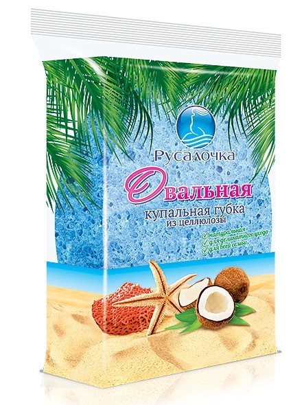 Русалочка овальная купальная губка из натуральной целлюлозы