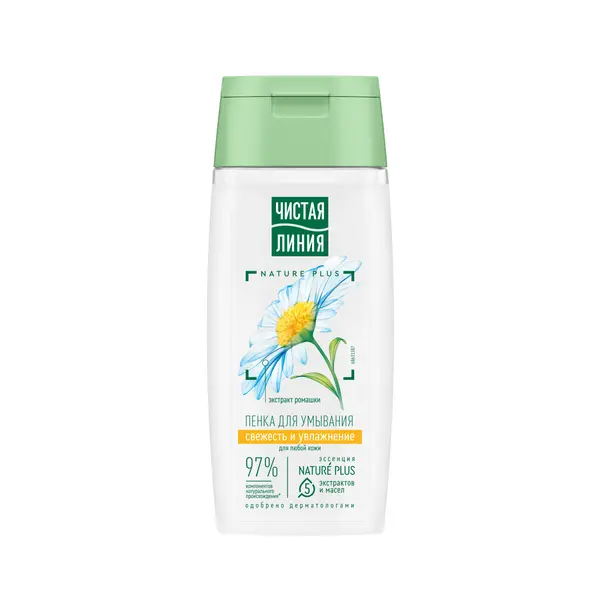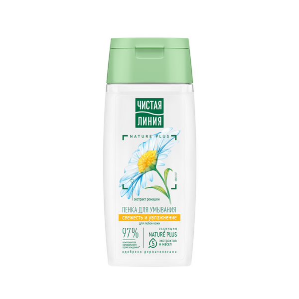 Встречайте обновленную пенку для умывания от Чистой Линии с усиленной формулой1 и новым дизайном! В процессе очищения кожа нуждается также и в уходе. Попробуйте пенку для умывания, разработанную экспертами бренда Чистая Линия, которая качественно очищает без сухости, придает свежесть и сияние, увлажняет кожу. Продукт содержит 97% компонентов натурального происхождения*. Активные ингредиенты: эссенция из пяти экстрактов и масел NATURE PLUS – НЕЙЧЕ ПЛЮС (экстракты вербены и пиона, масла миндаля, льна, оливы) и экстракт ромашки. - Экстракт вербены восстанавливает баланс увлажненности и тонизирует. - Экстракт пиона и льняное масло успокаивают и смягчают. - Масло миндаля содержит жирные кислоты, витамины Е и F, питает и выравнивает поверхность кожи. - Ферментированное оливковое масло питает и защищает от преждевременного старения. - Экстракт ромашки успокаивает и увлажняет кожу, сохраняя ее естественную красоту. Воздушная, нежная текстура очень комфортна в применении. Результат: очищенная, увлажненная и естественно красивая кожа.