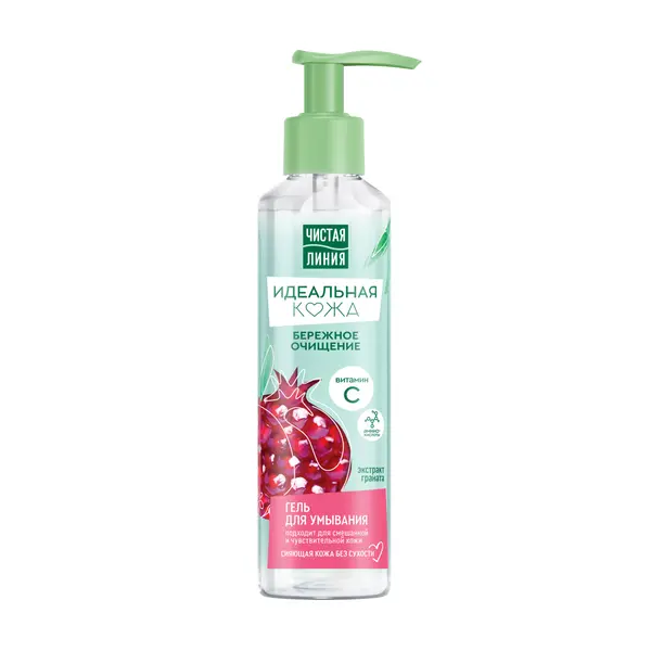 Чистая Линия идеальная кожа гель для умывания бережное очищение для смешанной кожи с экстрактом граната 160 мл