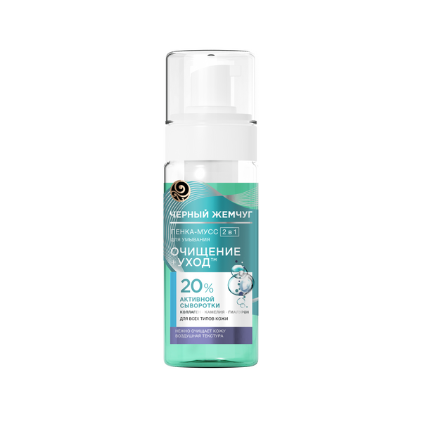 Очищающая пенка-мусс для умывания лица Черный Жемчуг 2в1 Очищение и уход — это новый стандарт очищения* от экспертов бренда Черный Жемчуг. Гиалуроновая пенка для умывания деликатно и качественно очищает кожу, не оставляя ощущения сухости. Средство имеет нежную, воздушную текстуру, которая тает на коже. Подходит для любого типа кожи. Очищающий пенящийся мусс Черный Жемчуг 2в1 Очищение и уход содержит: - 20% увлажняющей сыворотки с коллагеном; - масло семян камелии; - гиалурон. Сыворотка в составе средства увлажняет, питает и повышает упругость кожи уже на этапе ее очищения, при этом продолжает эффективно действовать даже после смывания. Коллаген в формуле сыворотки создает легкую невидимую пленку на поверхности кожи и защищает ее от потери влаги, восстанавливает тургор кожи, активизирует выработку кожей собственного коллагена и способствует омоложению. Масло семян камелии известно своими антиоксидантными свойствами. Оно укрепляет защитные функции кожи и повышает ее эластичность. Гиалурон эффективно увлажняет кожу, благодаря своей способности притягивать влагу, и делает ее более мягкой и гладкой. Теперь уход за кожей стал в два раза эффективнее.** Действие гиалуроновой пенки для умывания Черный Жемчуг 2в1: - безупречно очищает кожу без пересушивания; - заметно сужает поры; - дарит ощущение комфорта и увлажненности; - повышает эластичность кожи; - укрепляет защитные функции кожи.