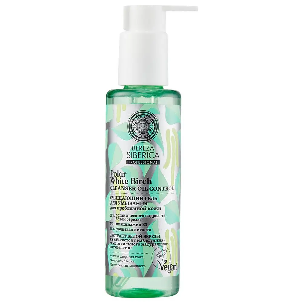 Очищающий гель для умывания бережно смывает загрязнения и излишний себум, обеспечивая контроль блеска, успокаивая, увлажняя и делая кожу чистой и свежей. Белая полярная береза содержит в несколько раз больше бетулина, чем береза, растущая в средних широтах. А высокие концентрации витаминов B2 и B5 оказывают сильное успокаивающее действие, препятствуют потере влаги, осветляют несовершенства и выравнивают тон кожи. БЕТУЛИН известен своим мощным противовоспалительным действием, он эффективно успокаивает раздражения, сужает расширенные поры, препятствует возникновению акне и усиливает иммунные свойства кожи, одновременно увлажняя и поддерживая здоровый баланс. Фолиевая кислота – оказывает антибактериальное действие, нормализует работу сальных желез, восстанавливает уровень влаги в клетках, разглаживая рельеф кожи. Ниацинамид В3 – улучшает обменные процессы в коже, эффективно стирает следы постакне, выравнивая тон.