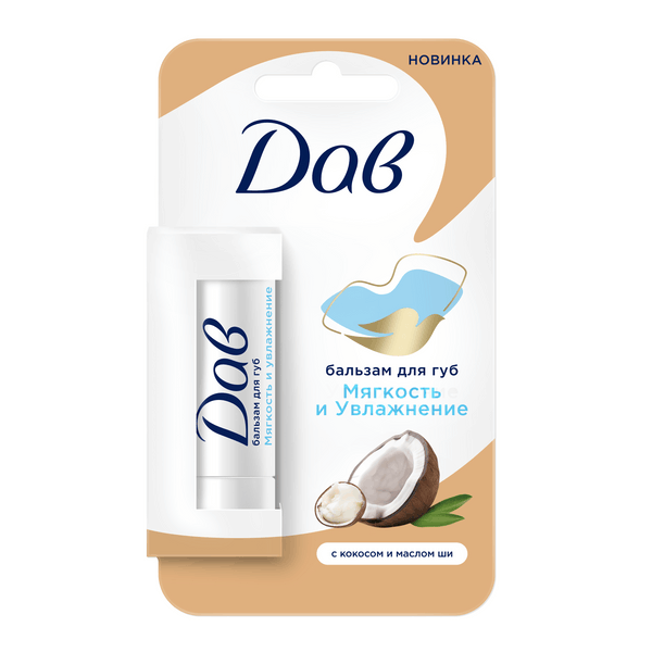 Бальзам для губ Дав Увлажнение и мягкость с маслами кокоса и ши создан для бережного ухода за сухой кожей губ. Косметический бьюти продукт подходит для женщин, девушек и девочек-подростков с 14 лет, ценящих нежный уход и заботу о своих губах. Увлажнение и питание кожи губ обеспечиваются формулой бальзама, содержащей натуральные масла кокоса, миндаля и ши, эмоленты и активные компоненты, которые удерживают влагу в коже. А также обеспечивают восстановление кожного покрова, отсутствие чувства стянутости и сухости. Витамин Е, входящий в состав, смягчает и увлажняет кожу. Защитная уходовая формула гигиенички обеспечивает дополнительную защиту от негативных внешних факторов*. Гигиеническая помада для губ увлажняющая женская обладает легкой текстурой, которая словно тает на губах, окутывая их ощущением комфорта и заботы. Насладитесь экзотическим ароматом нежного кокоса, который превратит каждое нанесение в неповторимый ритуал ухода и подарит удовольствие от использования!