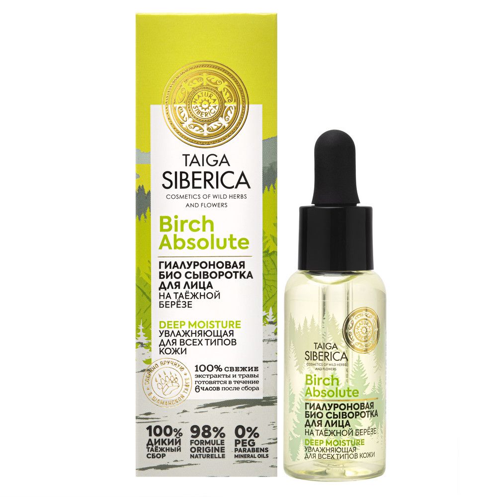 Taiga Siberica био сыворотка для лица для всех типов кожи гиалуроновая увлажняющая 30 мл
