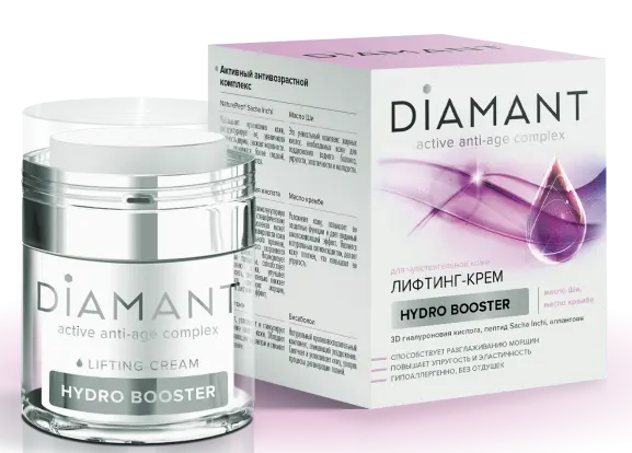 Чувствительная кожа лица склонна к покраснениям и появлению аллергических реакций, она моментально реагирует на любые раздражители, поэтому нуждается в более активной заботе. Лифтинг-крем DIAMANT разработан с учетом особенностей данного типа кожи для максимально бережного ухода. Гипоаллергенный состав содержит только самые необходимые действующие компоненты, которые направлены на глубокое увлажнение, омоложение и повышение защитных функций кожи. Комплекс масел в сочетании с аллантоином успокаивает и смягчает чувствительную кожу, снимая раздражение. При регулярном использовании кожа становится более упругой и эластичной, контуры лица выразительнее, а морщины - менее заметными. Уникальная бархатистая текстура крема быстро впитывается и не оставляет жирной или липкой пленки на лице. Активный антивозрастной комплекс: