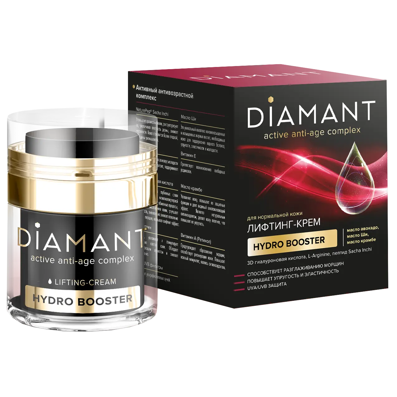 Нормальная кожа с годами начинает нуждаться в дополнительном увлажнении и питании. Лифтинг-крем DIAMANT создан специально для ухода за зрелой кожей и обладает интенсивным действием в борьбе с возрастными изменениями. Комплекс активных ингредиентов в составе крема направлен на глубокое увлажнение и омоложение. При регулярном использовании кожа становится более упругой и эластичной, контуры лица выразительнее, а морщины - менее заметными. Уникальная бархатистая текстура крема быстро впитывается и не оставляет жирной или липкой пленки на лице. Активный антивозрастной комплекс: