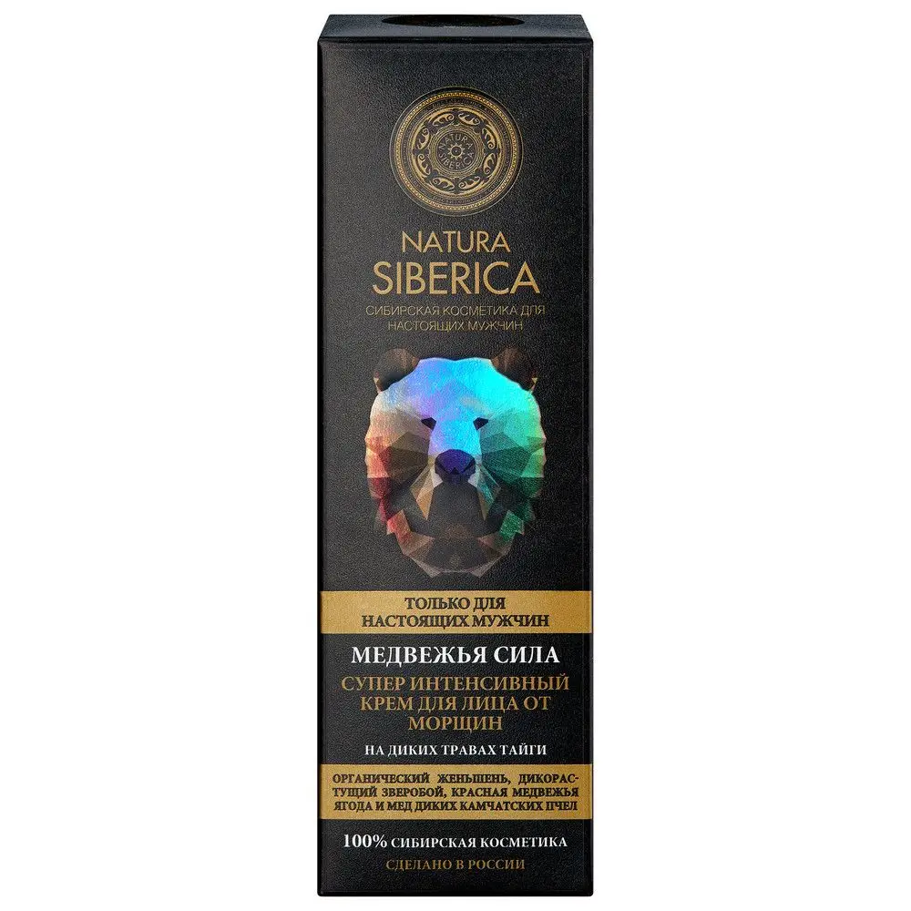 Содержит органический женьшень, дикорастущий зверобой, красную медвежью ягоду, мёд диких камчатских пчел. Супер интенсивный крем от морщин «Медвежья сила» создан для настоящих мужчин - сильных, смелых и уверенных в себе! Активная формула крема специально разработана с учетом всех особенностей мужской кожи и имеет четкое направленное действие. Органический женьшень и дикорастущий зверобой оказывают мощный омолаживающий эффект, заметно разглаживают морщины и повышают тонус кожи. Мед диких камчатских пчел питает и увлажняет кожу, насыщает ее полезным веществами и витаминами, улучшает цвет лица. Медвежья ягода обладает антиоксидантным действием и надежно защищает кожу от пагубного воздействия окружающей среды. Крем от морщин «Медвежья сила» - это мощный удар против морщин, который помогает выглядеть молодо и прибавляет уверенности в себе.