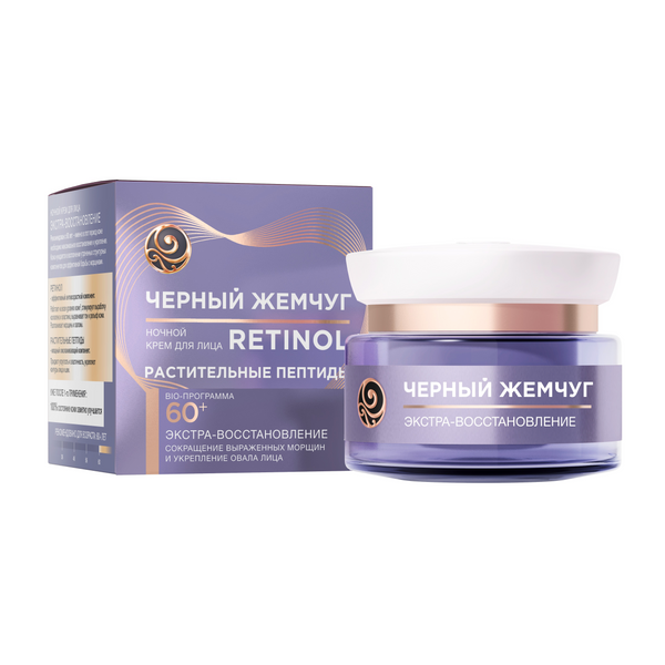 Черный жемчуг ночной крем для лица ретинол экстра восстановление 60+ лет сокращает морщины 50 мл