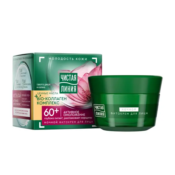 Чистая Линия ночной крем для лица активное омоложение от 60 лет таволга и калина 45 мл