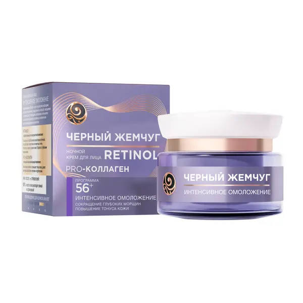 Черный жемчуг ночной крем для лица pro коллаген ретинол 56+ лет интенсивное омоложение 50 мл
