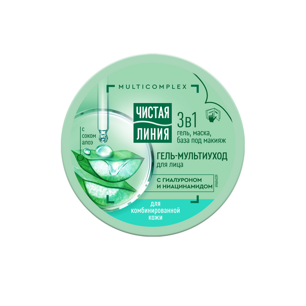 Попробуйте гель-мультиуход Чистая Линия, разработанный специально для комбинированной кожи. Продукт имеет легкую, приятную освежающую консистенцию, которая быстро впитывается, при этом увлажняет кожу. В составе продукта 97% компонентов натурального происхождения*. Так, сок алоэ увлажняет и успокаивает. Гиалурон создает на поверхности кожи тонкую невидимую пленку, тем самым препятствуя потере влаги, смягчает и увлажняет кожу. Ниацинамид восстанавливает барьерную функцию кожи, улучшает рельеф и внешний вид. Результат: кожа увлажнена и восстановлена без жирного блеска. Гель-мультиуход может быть использован как крем, маска и база под макияж. Большого объема 100 мл по выгодной цене' хватит надолго, и он будет всегда под рукой. Одобрен дерматологами. Для наилучшего результата очищайте кожу утром и вечером гелем для умывания 3 в 1, тонизируйте и наносите кремы для лица и вокруг глаз, 2-3 раза в неделю используйте гель-мультиуход как маску. Продукты Чистая Линия не тестируются на животных, что подтверждено лицензией международной организации PETA.